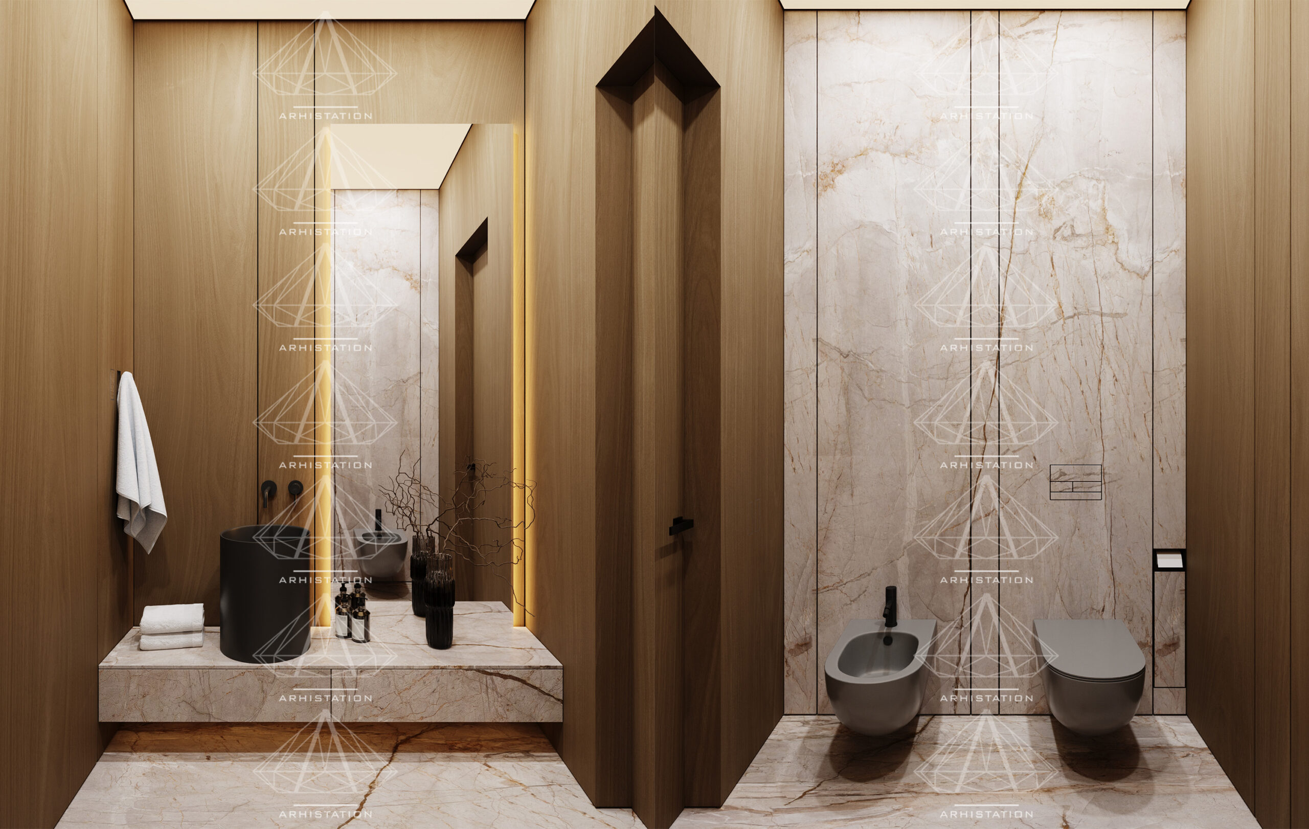 Дизайн2025 «Bentley House». Гостьовий санвузол у стилі мінімалізм admin 21.02.2026 ← «Bentley House». Гардеробна та комора в стилі мінімалізм «Bentley House». Вітальня, кухня/їдальня в стилі мінімалізм →
