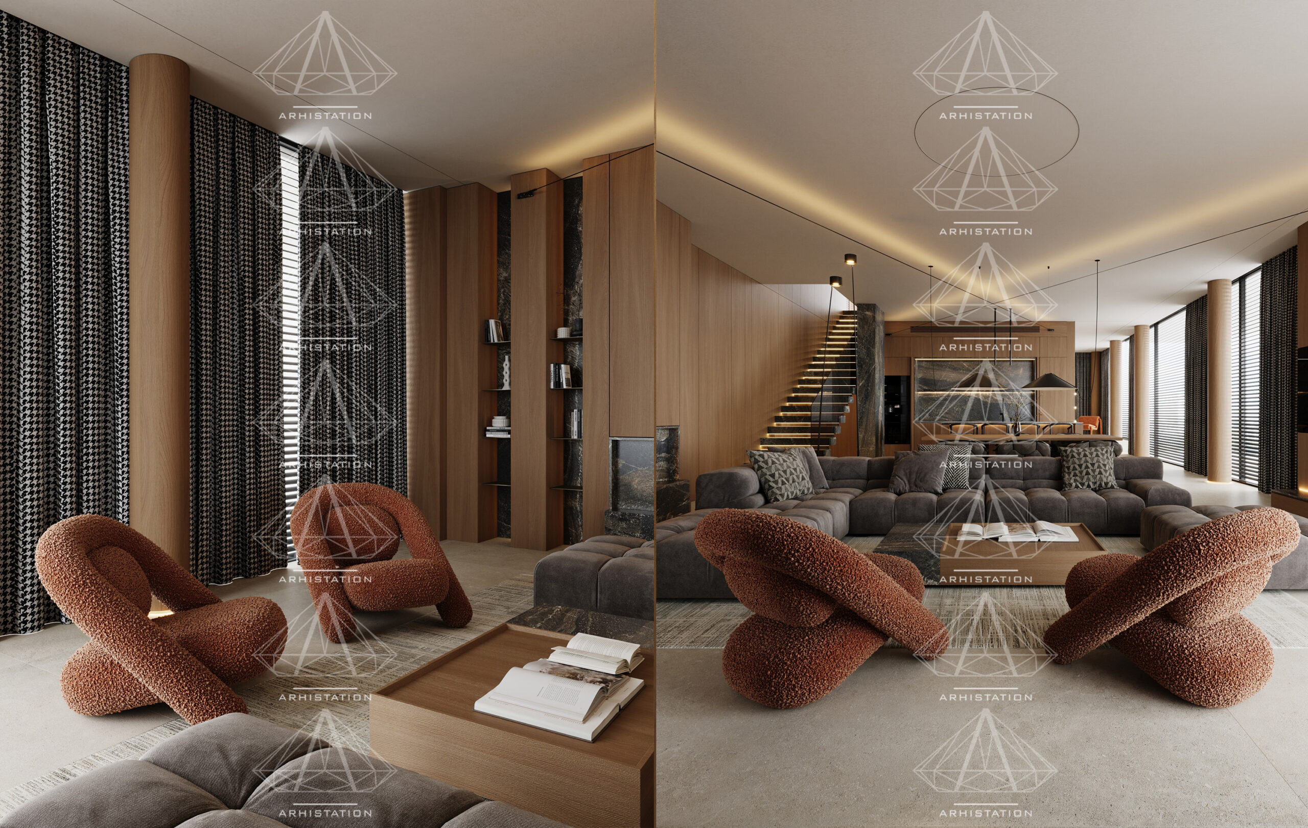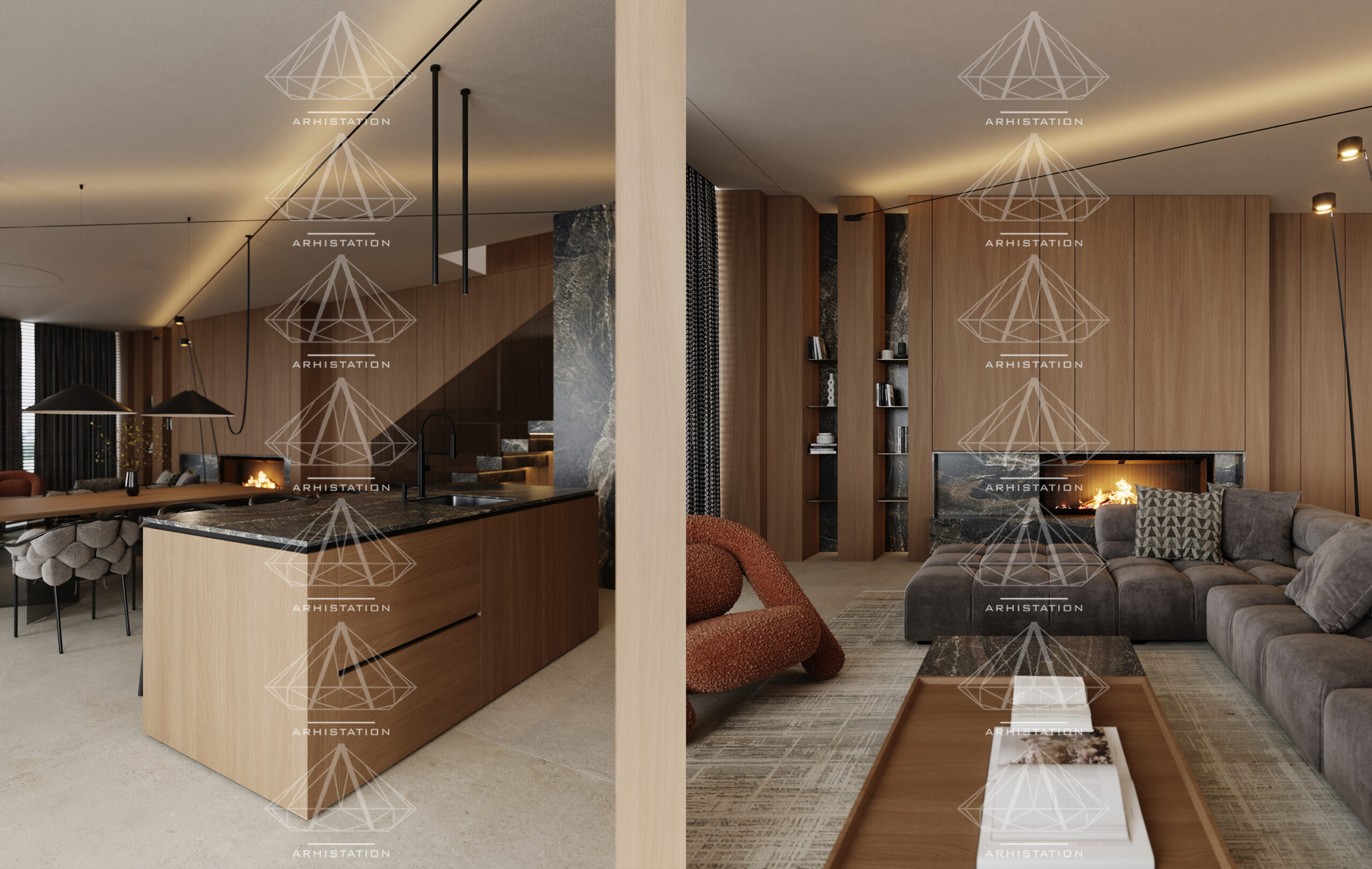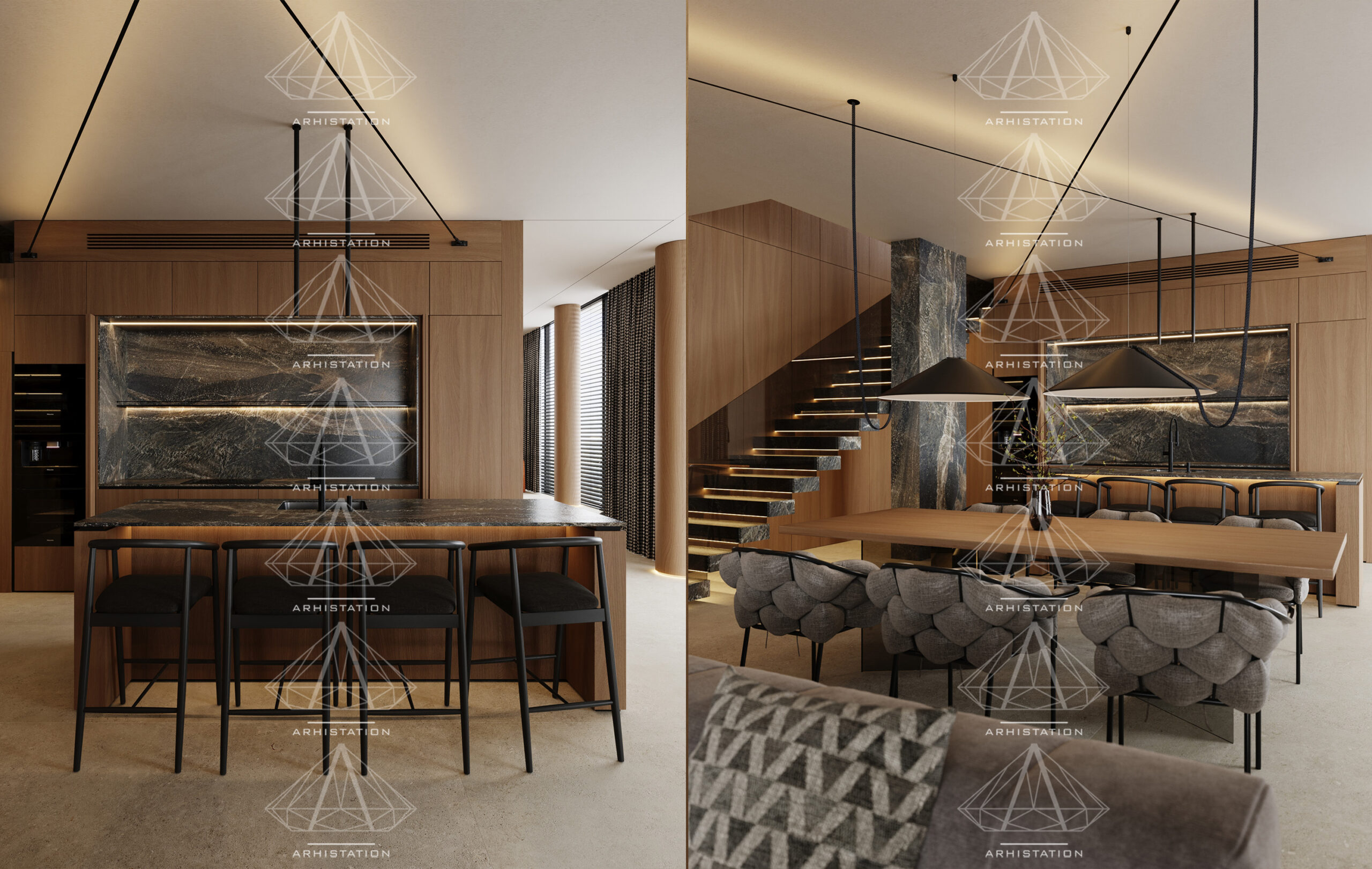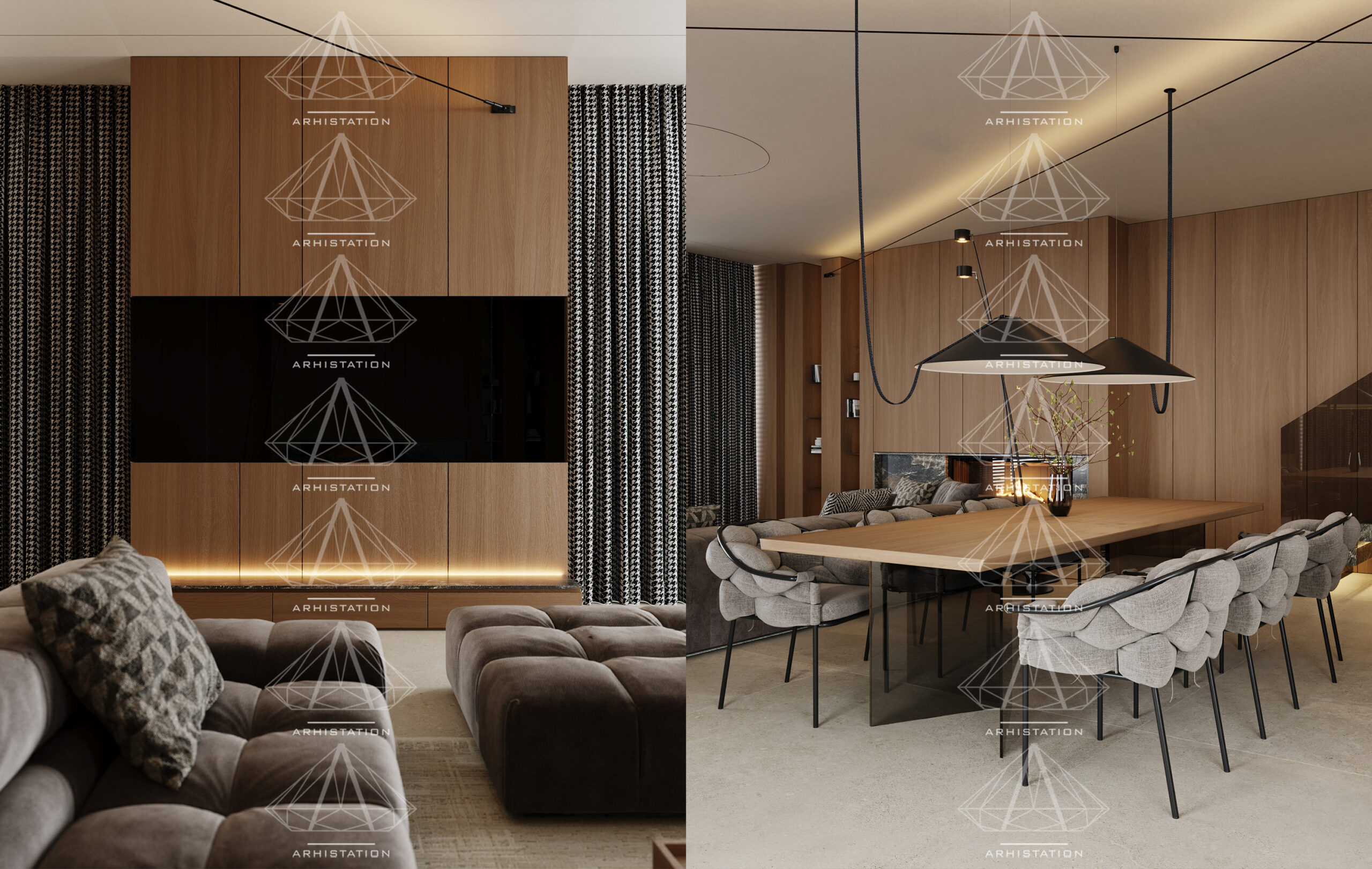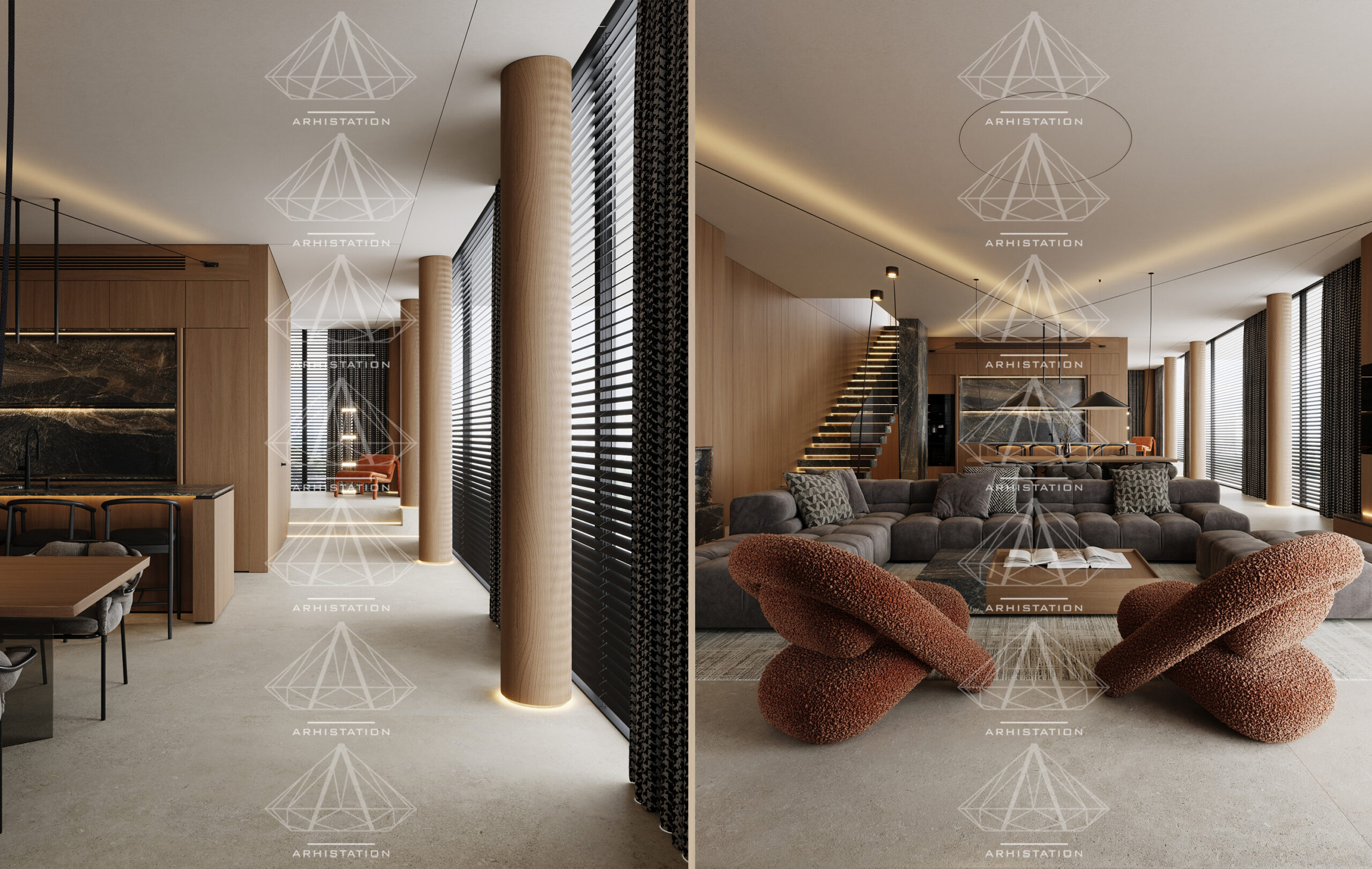 «Bentley House». Вітальня, кухня/їдальня в стилі мінімалізм